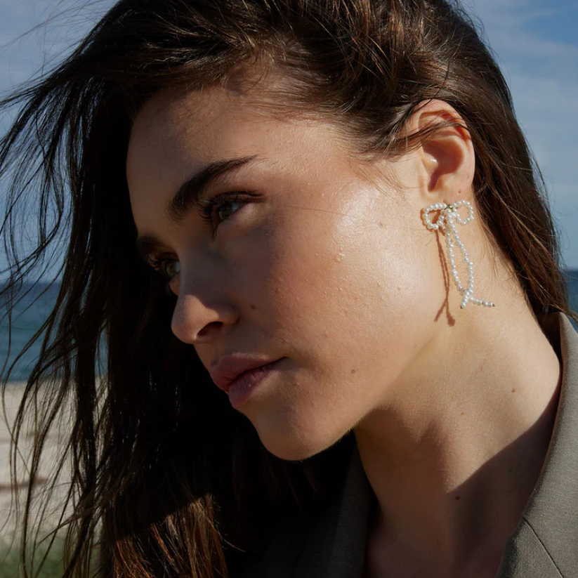 Natural, freshwater pearl wired bow earrings. Part of our Oceana collection, a collection inspired by our love of the ocean and the treasures that lie within.