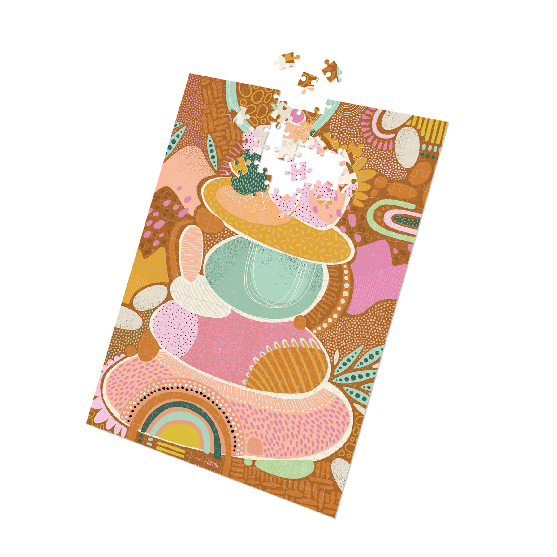 The team at Diesel and Dutch design puzzles to be hung in your home. Often designing two complementary puzzles that will feature well together in any room of your home.