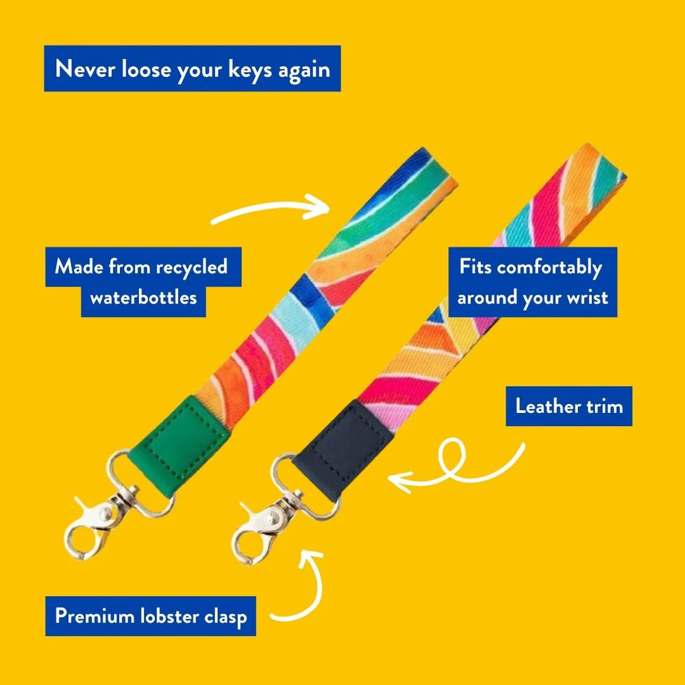 Each wrist lanyard is crafted using canvas fabric, finished with a natural leather fastening for extra protection and a durable nickel-free metal alloy clasp.
