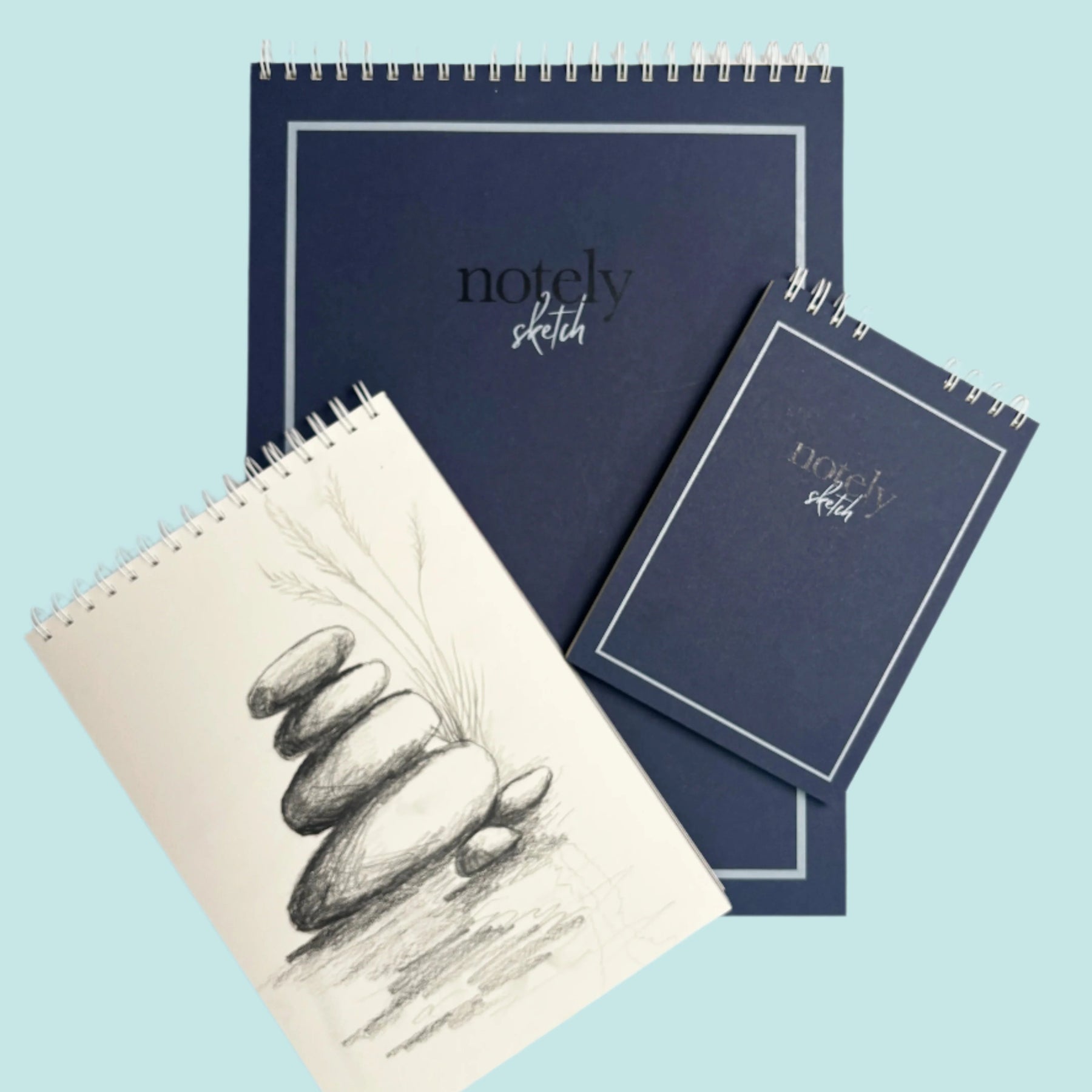 The sketch book strikes a contemplative balance between the calm ocean blue of its cover and its functional white binding, that usher you inside.