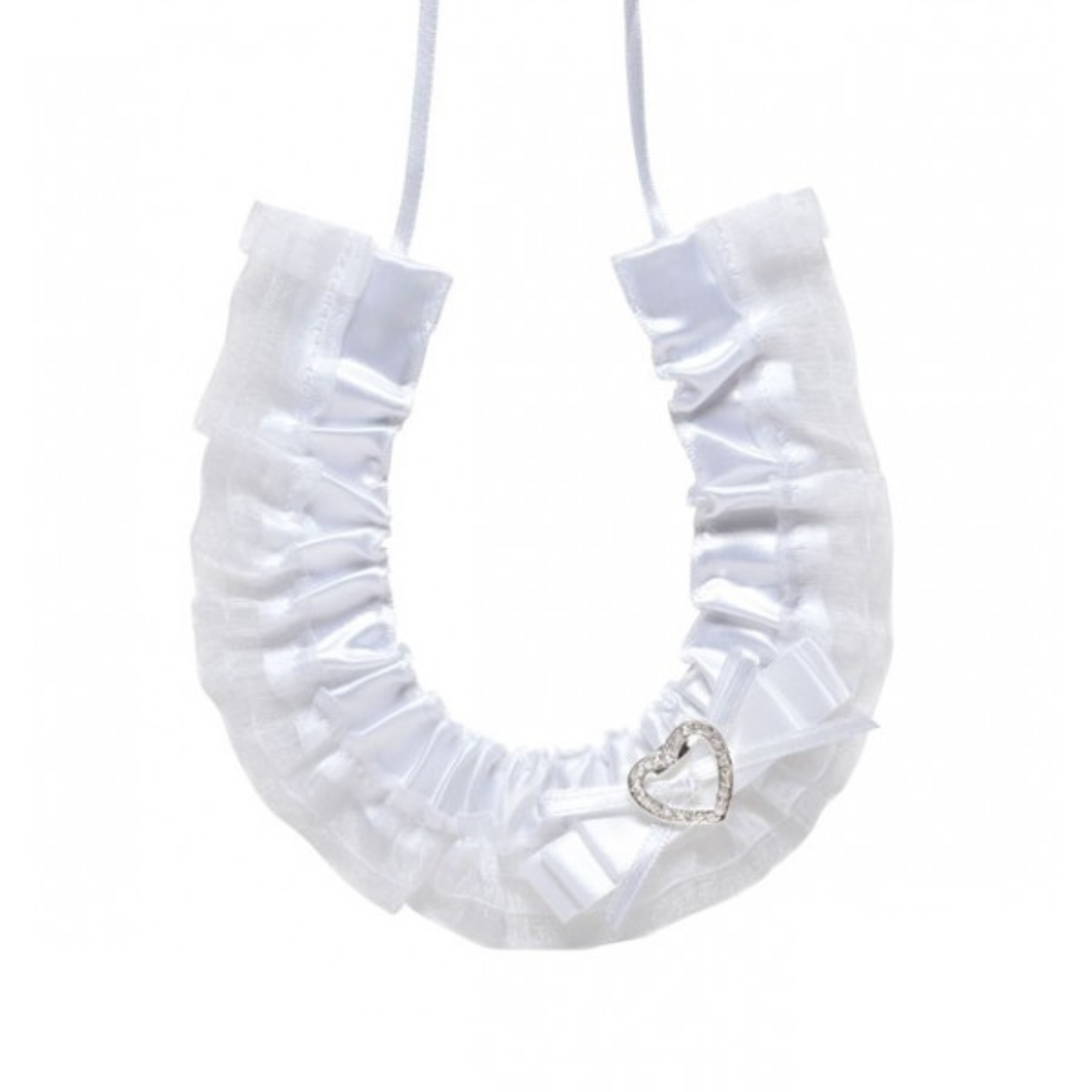 Stunning satin horseshoe with a heart diamante and bow.